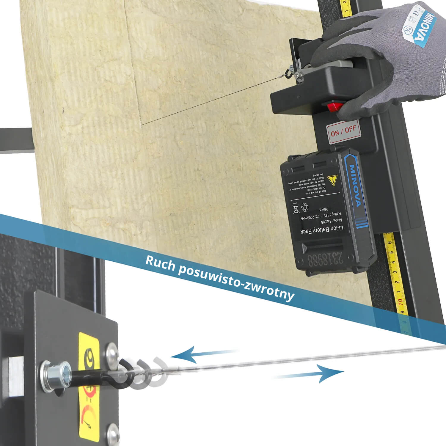 Akumulatorowa przecinarka do wełny i izolacji (PIR i PUR) Minova W100 (18V)